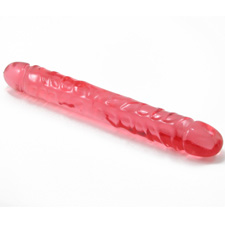 This Dong is clearly made for that someone special! Sharing your toys is always more fun when the toy is built for two. This elegant, petite double dildo is a full 12" x 1-3/4" of soft pink jelly. With gentle ripples and a sleek rounded head for each of you, game time never has to stop. Lube it up for two and enjoy. clear color Us made