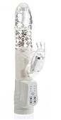 This is our top of the line Rabbit! This wild hare will drive you insane with orgasmic thrills! This is the Rabbit you’ve been waiting for! The 16-Function Rabbit Super Vibrator has a 7” long soft jelly shaft with a realistic penis tip that twists and rotates on your most sensitive spots, with 4 speeds and 6 spinning modes so you can have it exactly the way you want it! Rows of metal beads provide even more stimulation! The 16-function jelly clit-bunny vibrates and pulses in 10 separate modes and 4 speeds that drive you to screaming orgasms! And it’s waterproof for wet adventures! Removable tri-pack battery loader uses 3 AA batteries. Customers love the 16-Function Super Rabbit Hop on our Super Sale